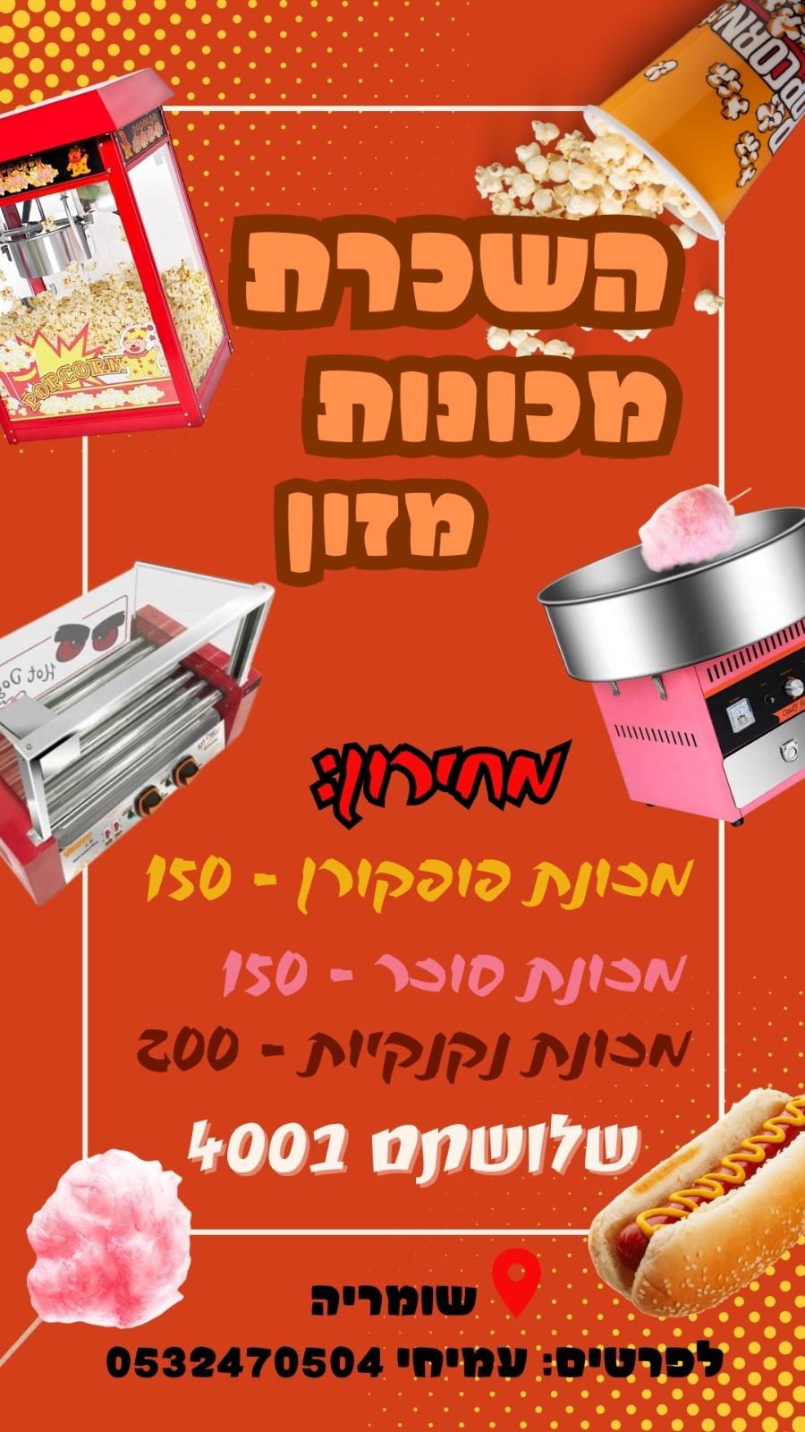 0532470504 - עמיחייומולדת?🤪 אירוע משפחתי?🤩 או שסתם בא לפנק את הילדים?😍 *השכרת מכונות מזון במחיר מצחיק!😂* 🍿 מכונות אמינות וחדשות! 🌭 אפשרות לתפעול בזמן האירוע! 🚗 אפשרות למשלוחים! 📍איזור הדרום מוזמנים לדבר איתנו בכיף: 📞0532470504 - עמיחי1 תגובות 0 שיתופים 625 צפיות 0 ביקורות
